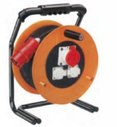 耐撞塑料卷盘,吸震钢架坚固耐用,便携提柄舒适。CEE400V三相五线插座1个,接地插座2个。三相插座均配备防水自动闭合护盖。三相过热载防护,红灯亮,显示过热过载,自动切断电源。
