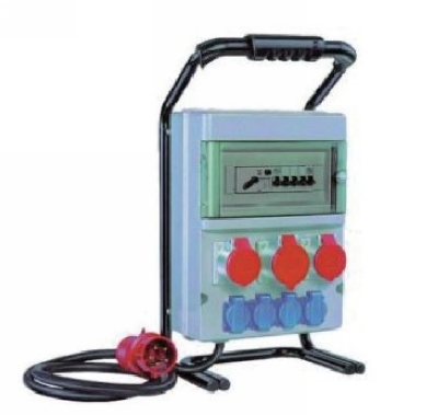 适用于建筑工地或户外使用,30mA故障断路器使得使用更安全;可关闭保护盖;坚固的覆合成材料钢管架保证了站立的安全并可以保护外壳;按照人类工程学设计的提手可以方便移动;接触保护插座分相位分布。