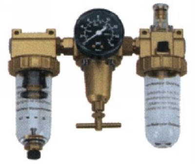 标准型号,三联件:由过滤器,调压阀和油雾润滑器组成。