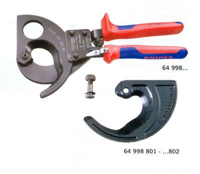 Kabelratschenschneider 280mm, Kabel 6-52mm, Griffe mit PVC-Überzug