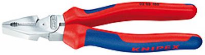 强力型由于采用新式改进型杠力矩设计,省力35%;较长剪切口适合剪切较粗电缆线;钳口适合夹持扁平和圆形材料,用于多种用途;剪切口适合剪切软线,硬线及钢琴丝;剪切刀口附加感应淬火,硬度为洛氏硬度64HRC;长度225,头部镀铬,双重双色手柄;剪切能力直径3.0mm面积25mm
