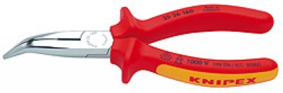 适于电子元件的夹持和剪切;尖形半圆嘴钳口;钳口表面带齿;剪切刀口适于剪切中硬线和硬线;刀口硬度约为洛氏硬度HRC61;长度160,头部镀铬,双色双重材料绝缘手柄