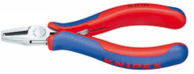 适合弯曲和剪切线端;双色双重材料手柄;能碾压和剪切电路板下1.6mm长的线头;长度125;头部镜面抛光;双色双重材料手柄