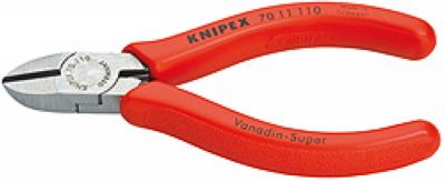 精密的剪切刀口适于剪切软线和硬线;切割硬度约为洛氏硬度62HRC;头部较窄,适用于小空间的操作;型 1:偏刃,配备复位弹簧;长度110,头部抛光,塑料套柄