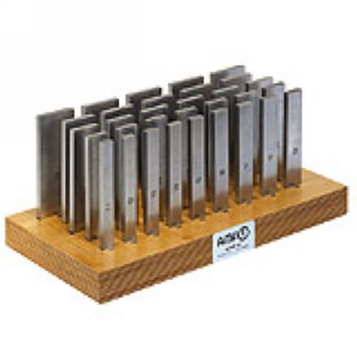 In wooden stand. Plain parallel, fine-ground, in pairs. Size data on the product. Pair tolerance tp at height IT 5. Rated dimensional tolerance in height ±0.01 mm. Remaining dimensions to DIN ISO 2768m.