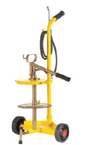 用于15kg油桶,配有: 手动泵 手推车 桶盖?280mm 随动板?265mm 2m橡胶管 球阀M10x1 带4片爪黄油嘴的150mm喷管
