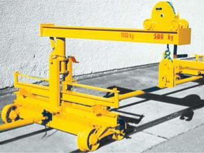一辆带有侧悬挂式装货机和起重机的轨道小车 包括驻车制动器,拖车连接器,连杆 有免维护滚珠轴承的铸钢轮 有安全上升和下降装置的起重机 伸长臂高度角可调 自动钢轨夹