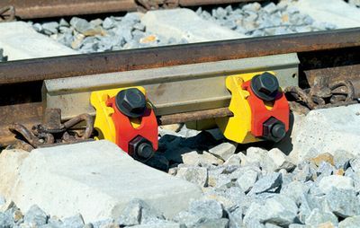 用于两个钢轨头安全连接 短、紧凑的设计使其应用范围广泛,用两个鱼尾夹可直接安装钢轨夹,也可用曲柄鱼尾夹进行铝热焊接(用户提供) 成对使用 质轻,易操作 用于宽底钢轨S 49, S 54 和 UIC 60 及其他所有类似的钢轨断面 通过安全板确保螺母安全 易于操作(固定和安全螺丝有相同的扳手口尺寸) 钢轨夹确保捣固机顺畅工作 要求最少碎石挖掘,可用于绝大多数车道 即使长时间在轨道上也极少需要维护 DB认可